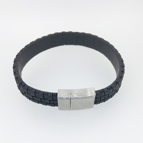 630-27 CUDWORTH BRAIDED BLACK ITALIAN LEATHER BRACELET