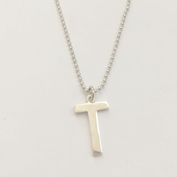 LN02 VON TRESKOW SS 40CM BALL CHAIN NECKLACE W LARGE INITIAL T 50CM