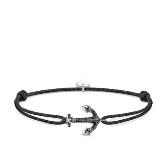 LS055 THOMAS SABO LITTLE SECRET BLCK CZ ANCHOR BRACELET 16-27CM