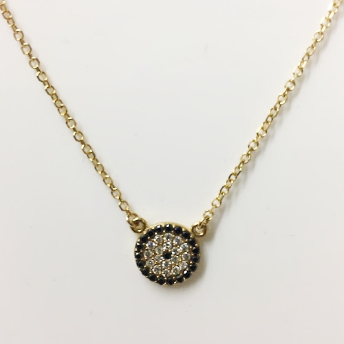 SN4169 9CT YG ROUND BLACK CZ PAVE RIM DISC PENDANT NECKLACE 2G